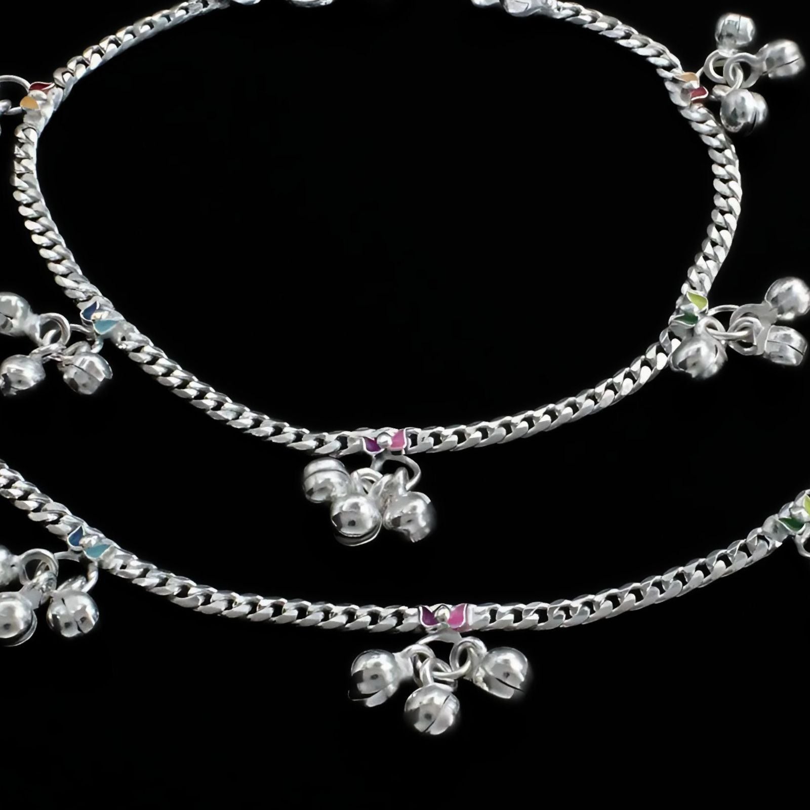 Expertly crafted with real sterling silver, our kids jingle bells anklets add a touch of whimsy to any outfit. Perfect for the little fashionista, these ankle chains also offer a delicate jingle sound that will put a smile on your child's face. Available in 8.5" length.