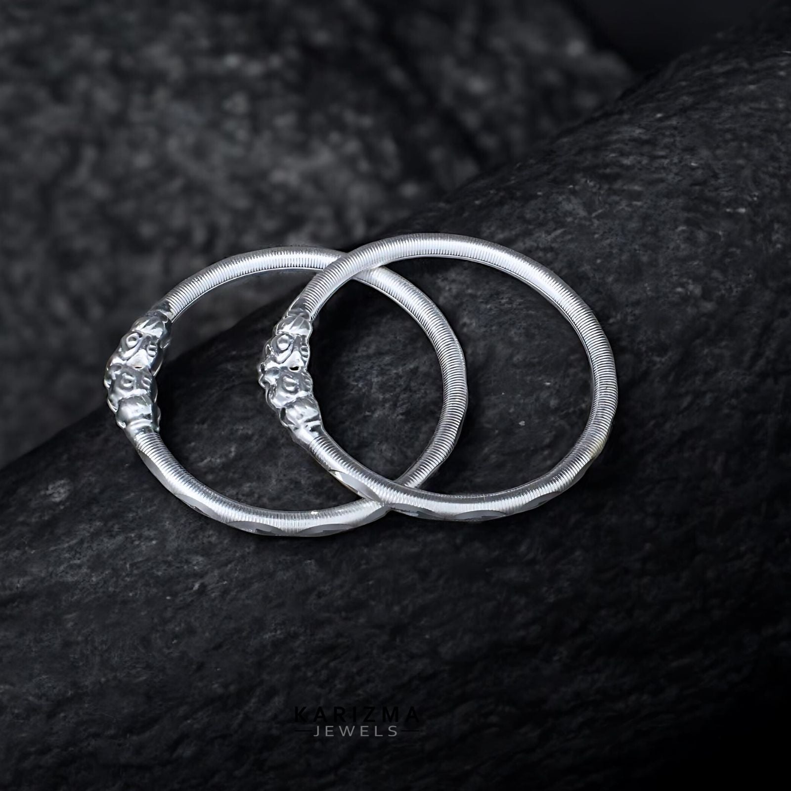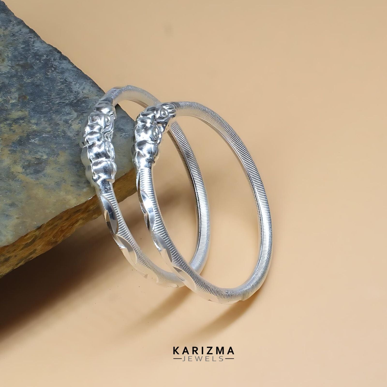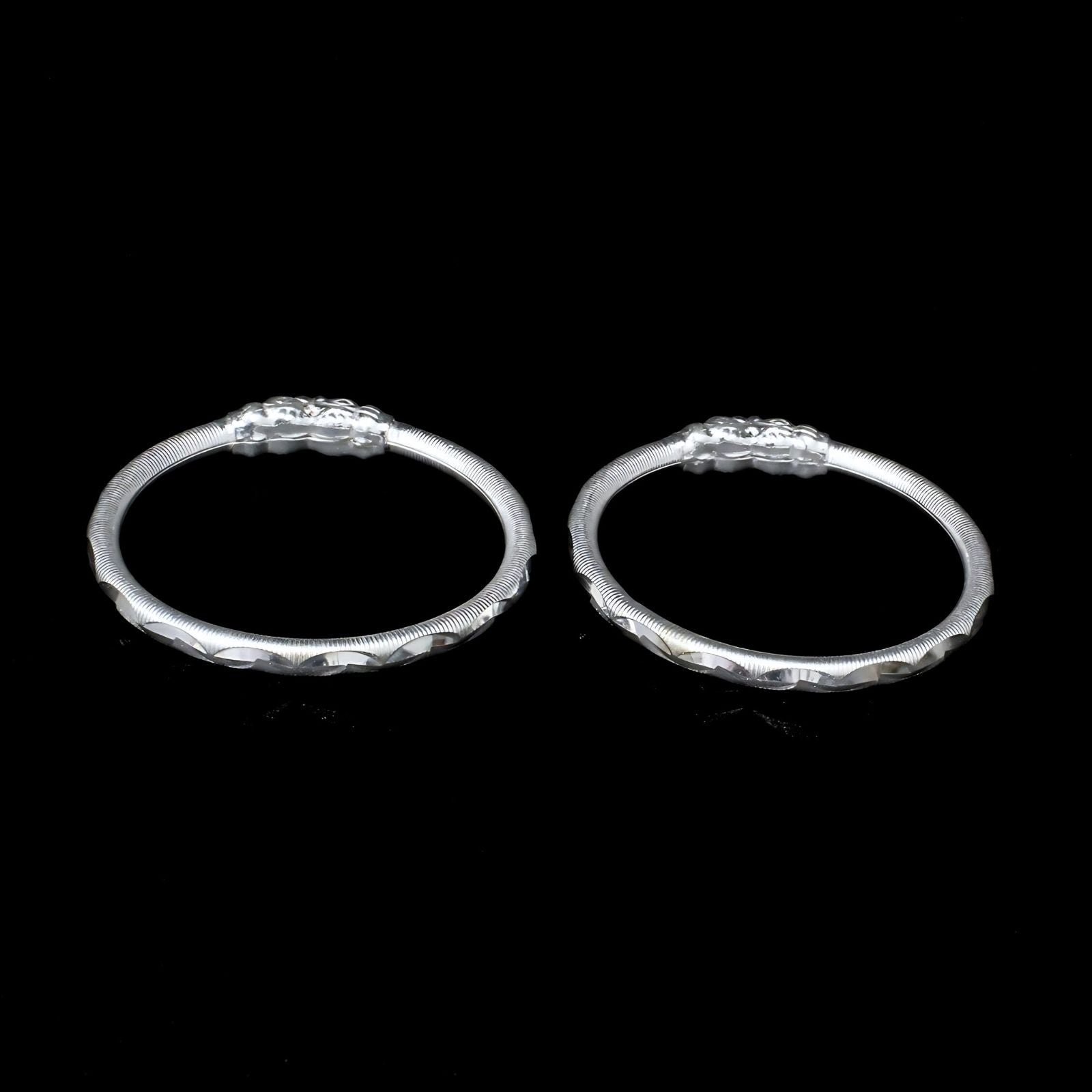 These real silver bangles, measuring 3.7 CM, are handmade and perfect for any casual occasion. Crafted with precision and quality, they add a touch of elegance to Kids' wear. The pair comes in a classic design, making it a versatile accessory for any outfit.