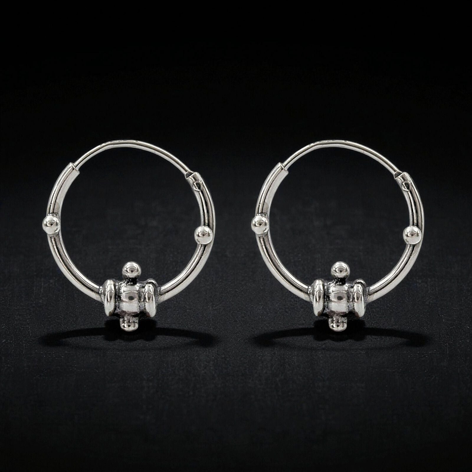 Divine 925 Real Sterling Silver Oxidized bali hoop earrings for women - Pair