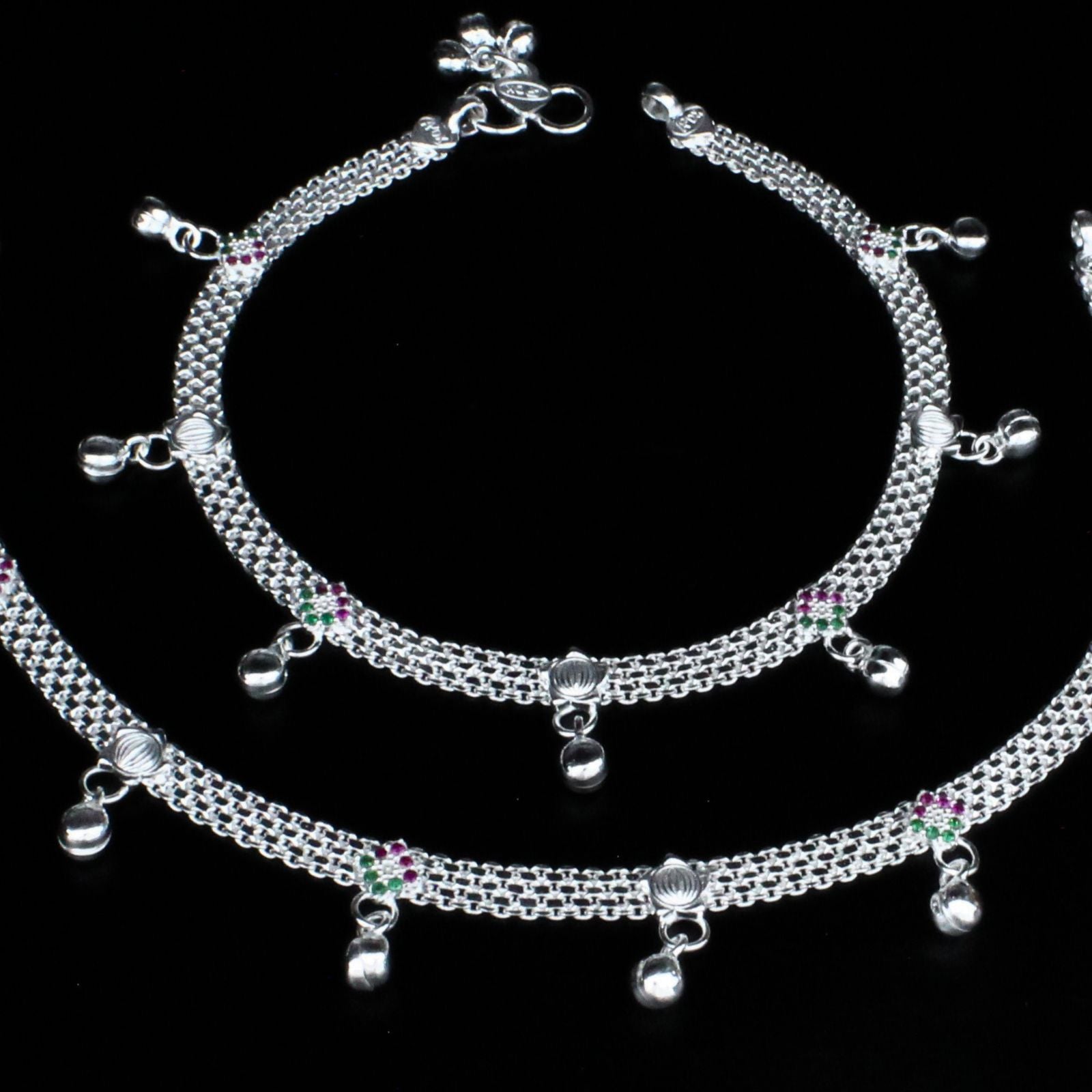 This anklet is expertly crafted with real sterling silver, making it a high quality and durable accessory for any occasion. The beautiful green and pink cubic zirconia stones add a touch of elegance and charm to any outfit. Pair it with any shoe for a stunning ankle embellishment.