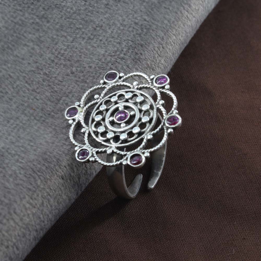 This oxidized ring is crafted from high-quality 925 sterling silver, adorned with sparkling cubic zirconia stones. With its tribal-inspired design, it adds a touch of ancient elegance to any outfit. Made with precision and attention to detail, it is a timeless piece that exudes sophistication and luxury.