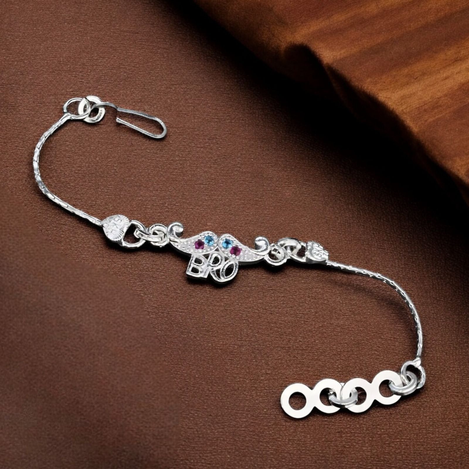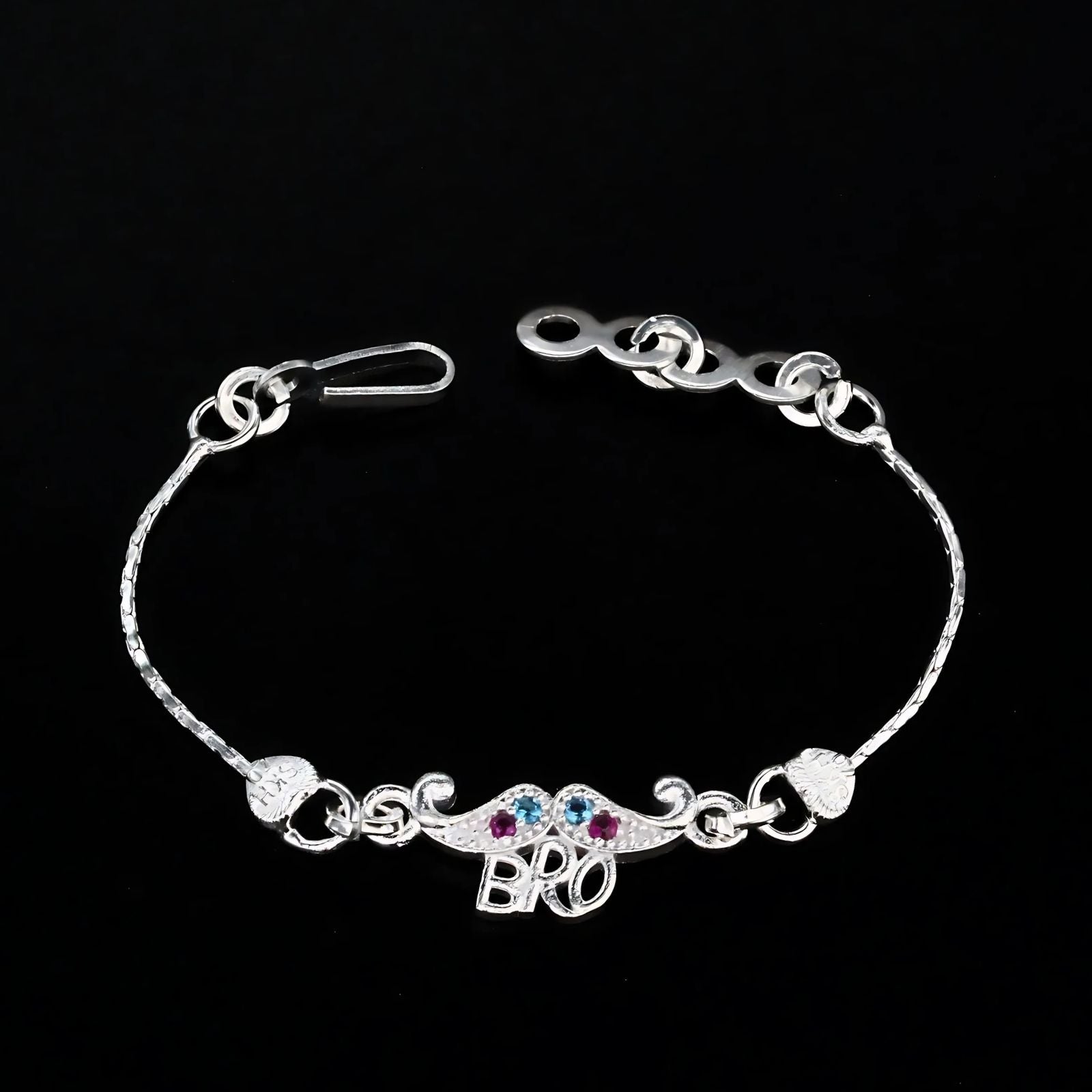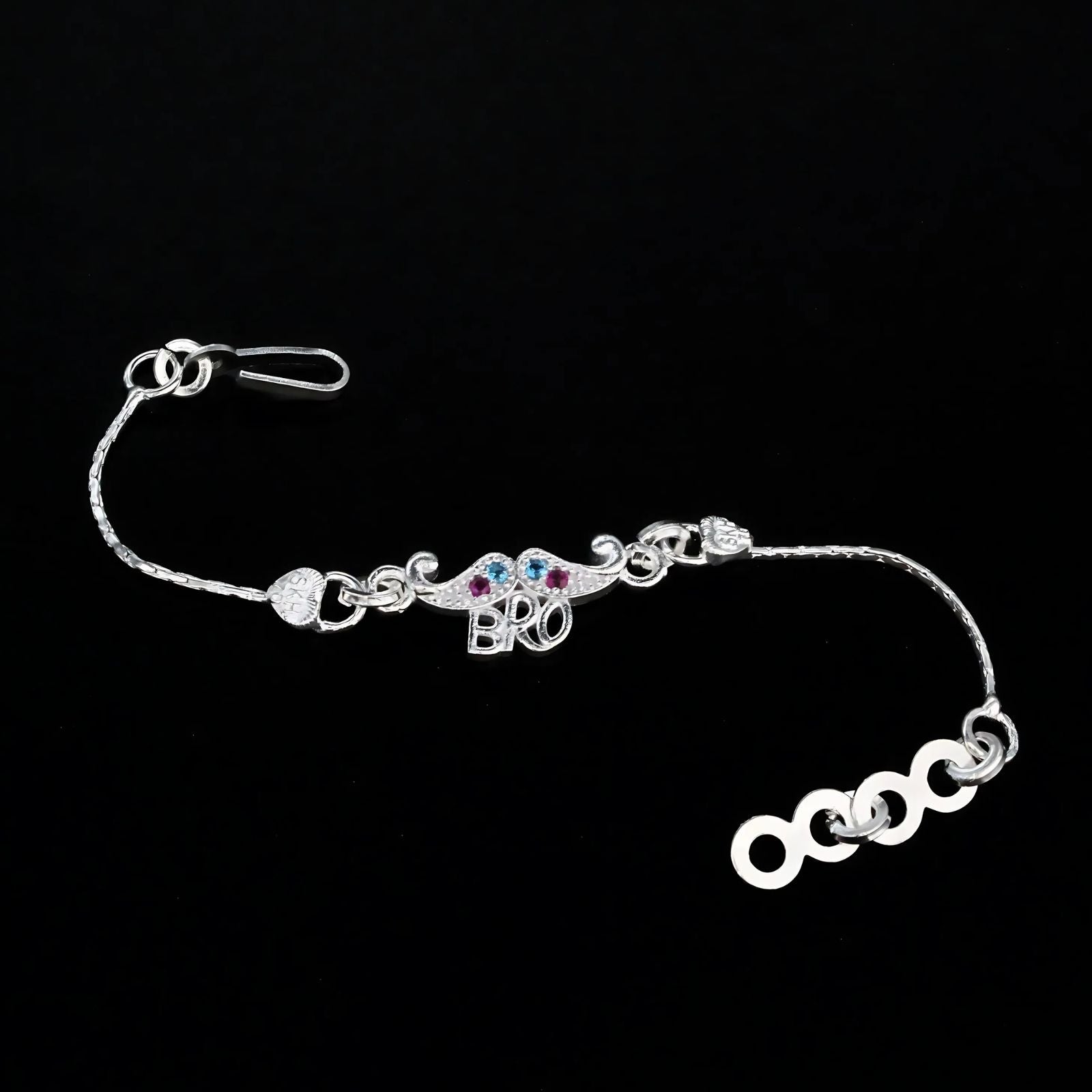 Real Silver Bracelet Excellent CZ Kids Bro Moustache Rakhi 5"